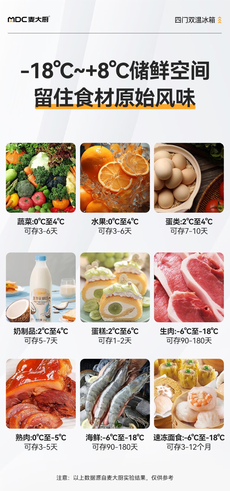 冷冻温度范围:0℃~-18℃