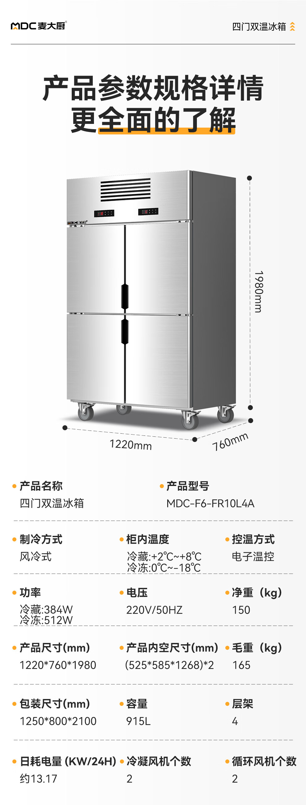 - 更多MDC商用四六门冰柜规格咨询在线客服