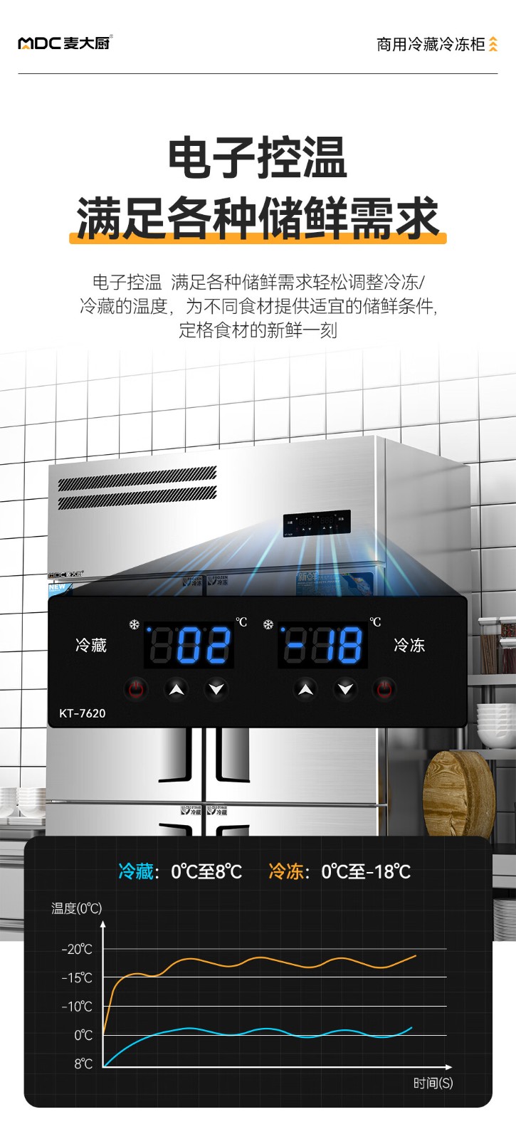 冷冻温度范围:8℃~-18℃