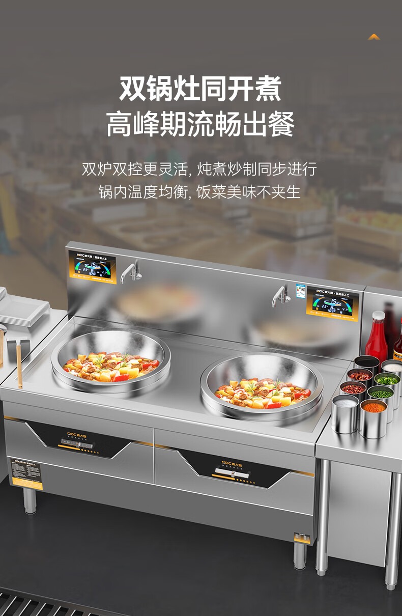 快三导师带计划赚钱饭店大炒锅电磁炉旗舰款25KW双头食堂酒楼商用大炒炉