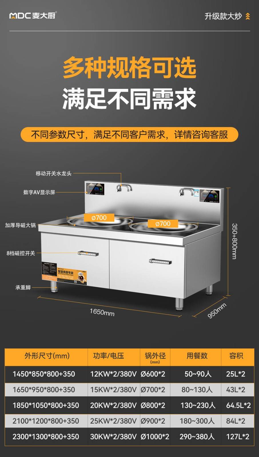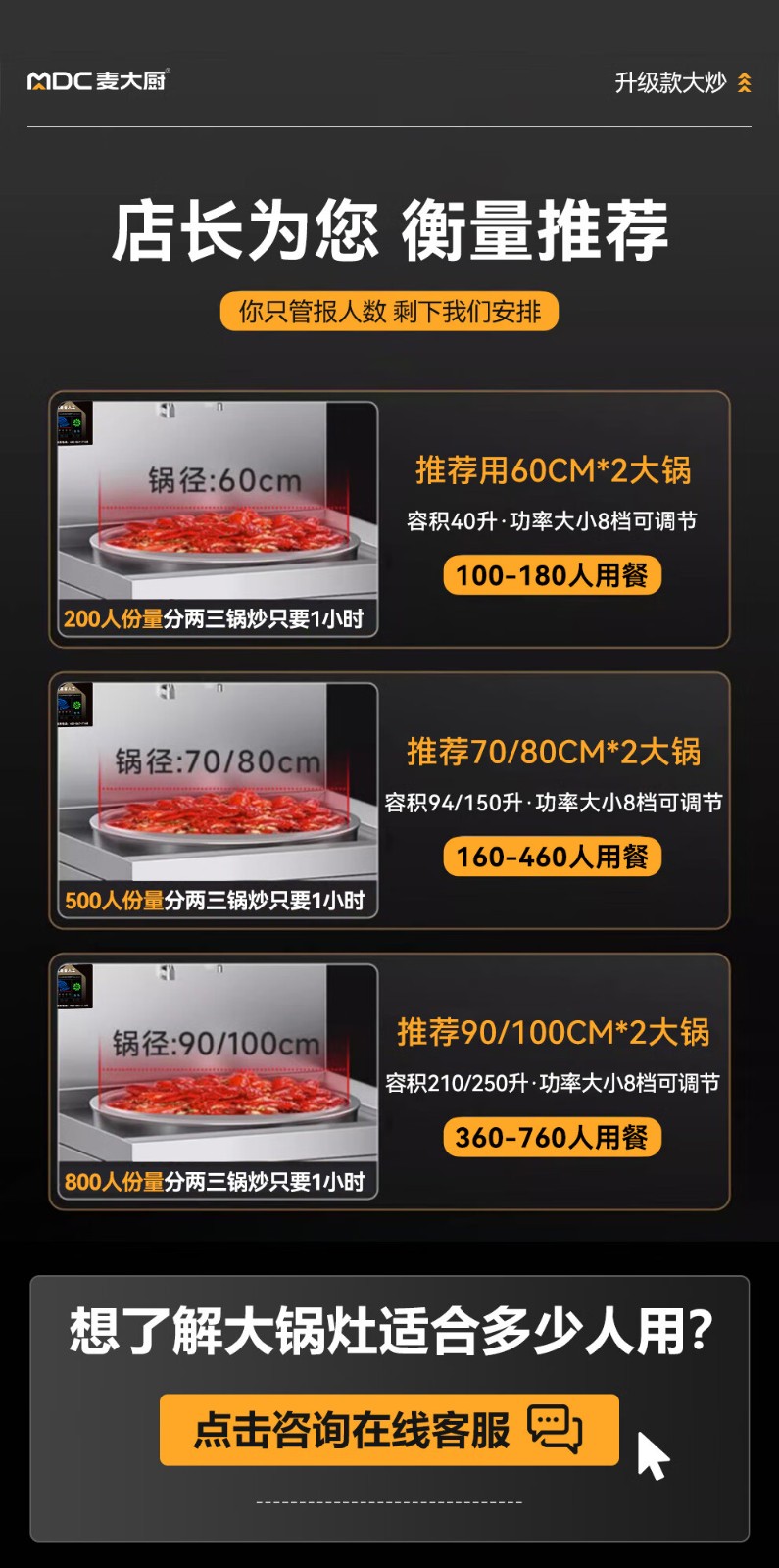 • 更多MDC商用大锅灶规格咨询在线客服