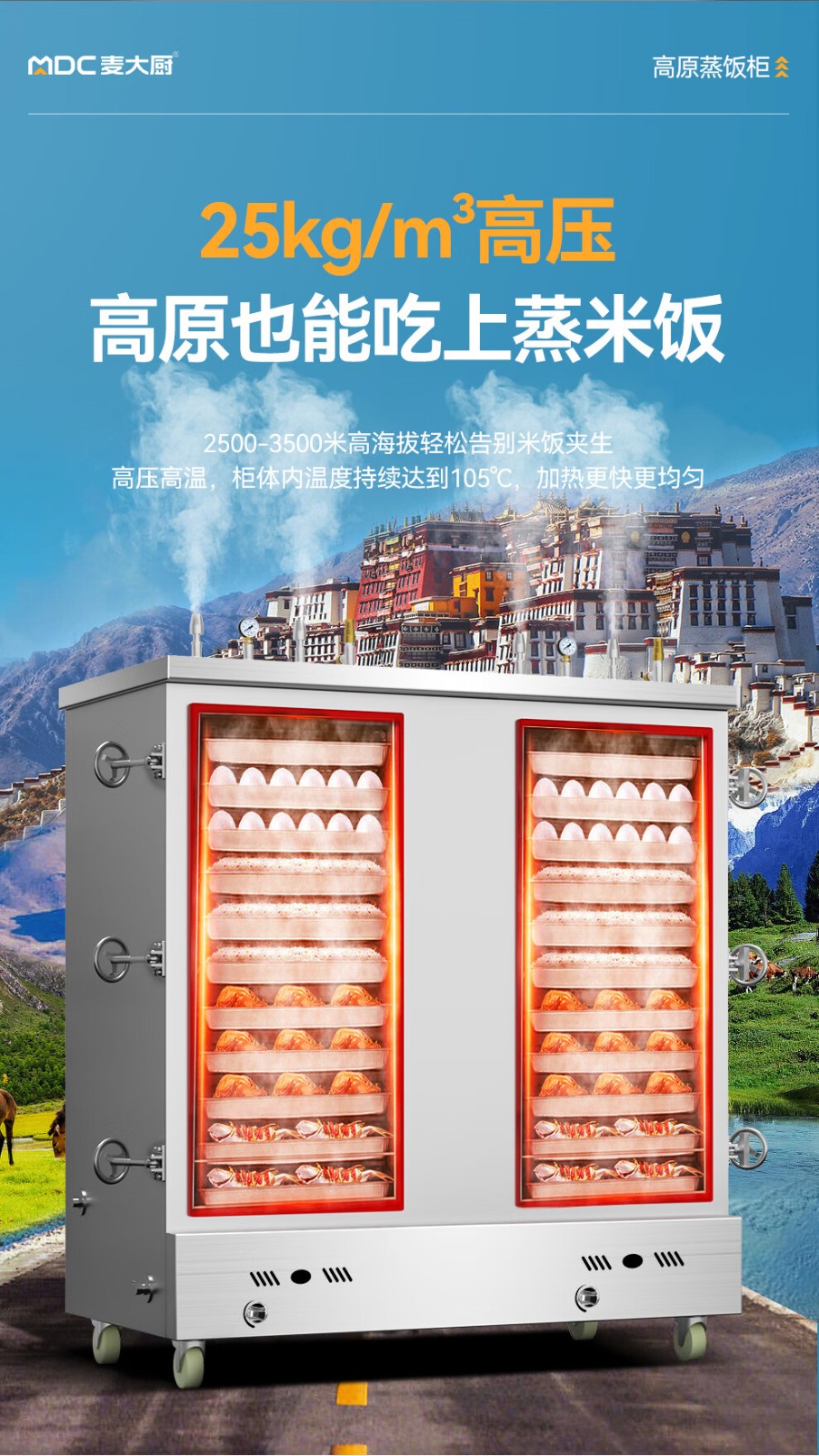 MDC商用高原蒸柜燃气款40盘双门蒸饭柜