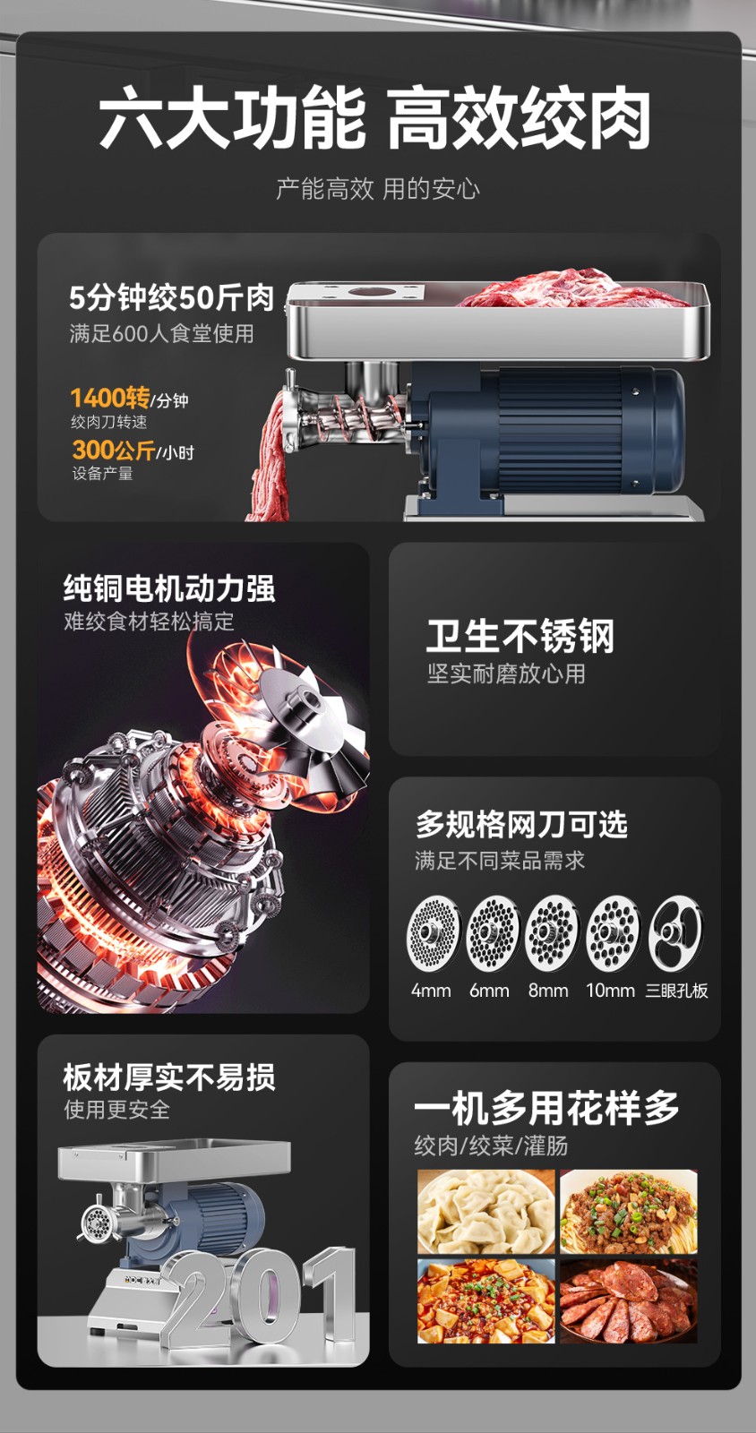 • 绞肉产能:300kg/h