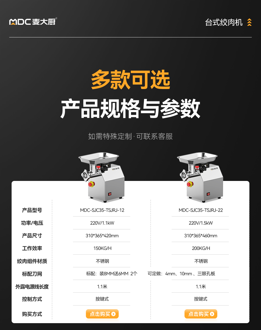 • 更多MDC商用绞肉机规格咨询在线客服